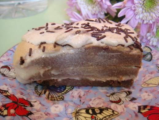 Уложить слоями бисквит и крем и поставить в холодильник на несколько часов.