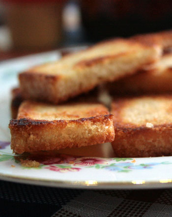 Затем чеснок выкинуть, а в оставшемся масле обжарить гренки.