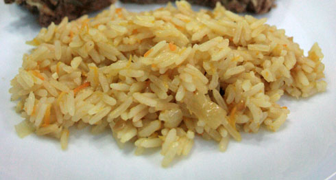 Лук мелко порезать, морковь натереть на мелкой терке. Растопить в сковороде сливочное и оливковое масло. Обжарить лук до прозрачности, добавить морковь и чеснок и жарить еще 5 минут. Затем выкладываем рис и продолжаем жарить. Через 5 минут выливаем 2 стакана горячей воды, добавляем гвоздику. Ставим на самую маленькую конфорку, закрываем крышкой и оставляем на 40 минут.