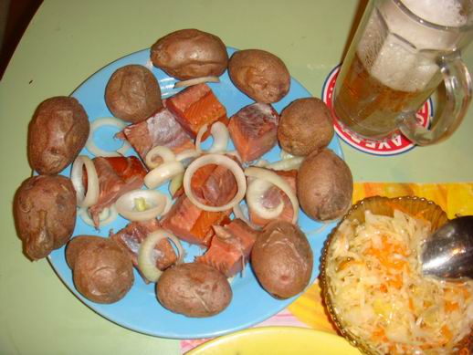 - Рыбный салат с сельдереем (рыба, морковь, сельдерей, солёный огурец, зелёный горошек)