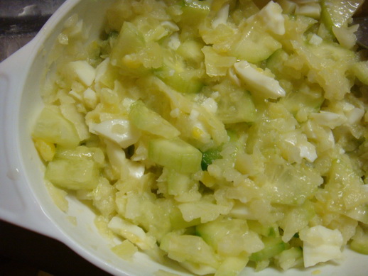 - Огуречный салат с луком, яйцом и маслом