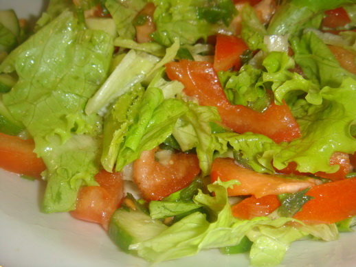 Салат из фасоли и помидоровСалат из цветной капусты с морковью и солёными огурцамиСалат из огурцов (огурец, китайская капуста, укроп, лимонный сок)