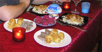 Точнее предновогоднее 2008 🙂 Это наш предновогодний праздничный обед 31 декабря. Мы обычно перед тем как идти куда-то отмечать Новый год, немного отмечаем дома вдвоем.