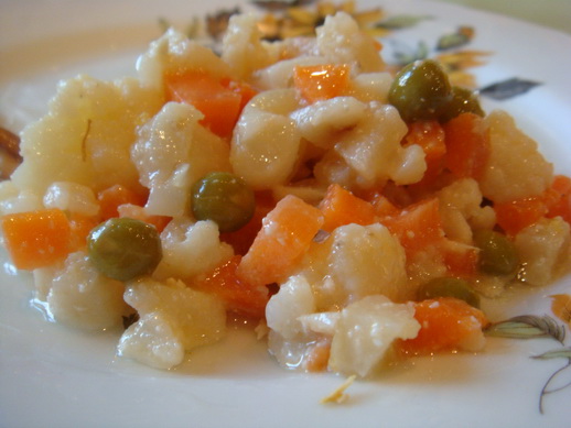 Морковь, сльдерей очистить, отварить, остудить, нарезать кубиками.