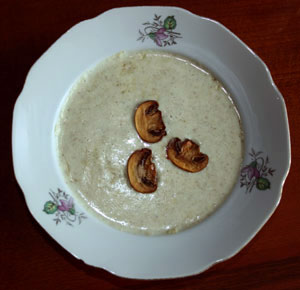 Вчера делала, получилось очень вкусно и очень сытно. Для украшения поджаривала кусочки грибов и делала тосты.