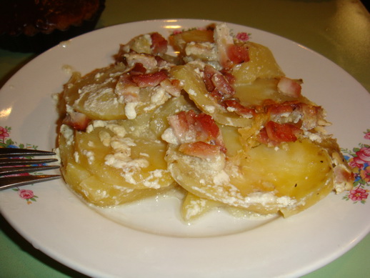 Залить соусом картофель и поставить запекаться на 35 минут в духовку.