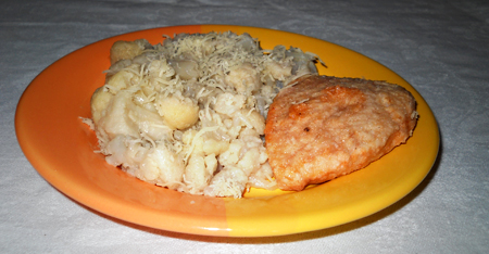 Филе пропустить через комбайн, добавить сливочное масло, взбитый яичный белок. Налить молока, посолить, поперчить. Массу хорошо взбить и ложкой выкладывать на сковороду в кипящий куриный бульон и варить до готовности. Я постаралась придать кнелям форму котлеток. Кнели можно подать вместе с бульоном, посыпав зеленью укропа и петрушки. Я приготовила на гарнир цветную капусту.