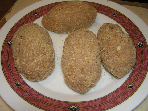 Из куриного фарша я иногда делаю такие котлеты. Получаются типа котлет по-киевски, но из рубленного мяса.