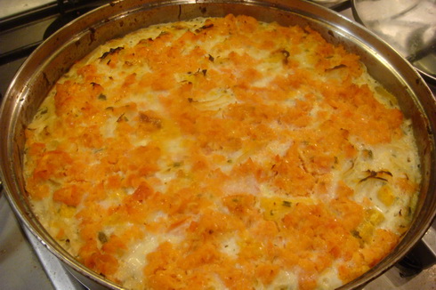 Смешать с овощами и снова поставить в духовку минут на 30 мин.