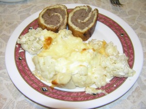 Остывший рулет нарезать на порционные кусочки и подавать к столу в качестве холодной закуски или горячего мясного блюда