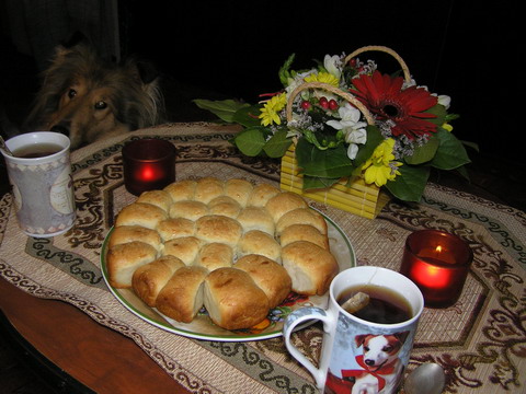 чтоб лучше отделялись булочки друг от друга можно чуть искупать их в растительном масле (которы форму смазали). такой разборник очень удобно брать с собой на пикник (и резать не надо и не крошится). Делал ли кто-нибудь разборник не со сладкой начинкой?