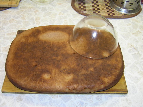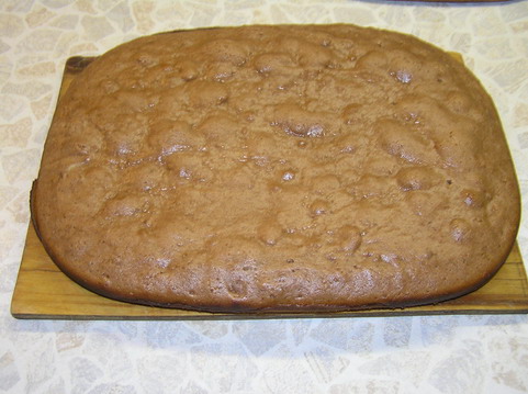 Необходимо выпечь бисквит, желательно прямоугольной формы — из него легче «кроить» изделие, меньше отходов.