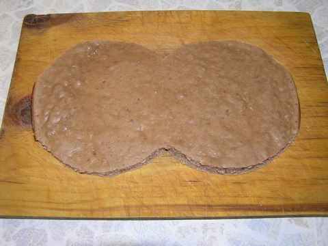 Далее необходимо выпечь основу. Я выпекала обычный круглый корж и из него вырезала.