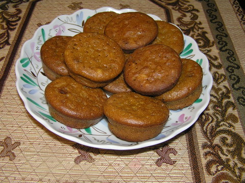 - Формочки для выпечки кексов смазать маслом, заполнить на 2/3 тестом и выпекать около 30 минут при температуре 180 градусов.