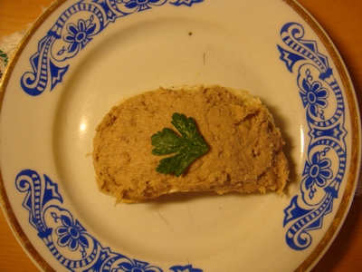 Мясо, горчицу, измельчённую зелень соединить с приготовленной смесью. Всё тщательно перемешать, добавить лимонного сока.