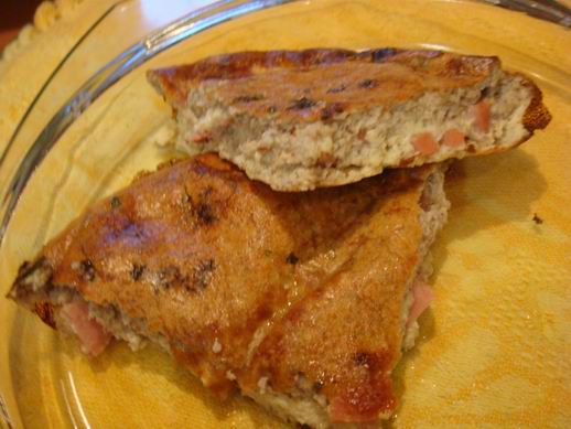 Шампиньоны довести до полуготовности в микроволновке. Грибы, яйца, соль, муку(я использовала опять льняную), молоко перемешать блендером. Добавить нарезанную сосиску(ветчину) и запекать в духовке 15 минут (можно в микроволновке).