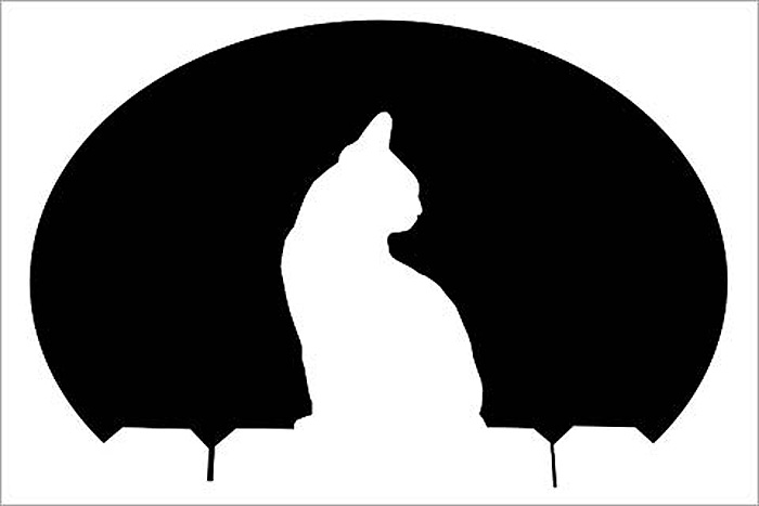 В поисках идеи для украшения новогоднего салата я нашла несколько замечательных картинок котов, которые можно использовать как трафарет. Делается все очень просто и быстро: печатаем на бумагу в нужных пропорциях, вырезаем, кладем на салат и заполняем пустоты контрастным к фону продуктом.