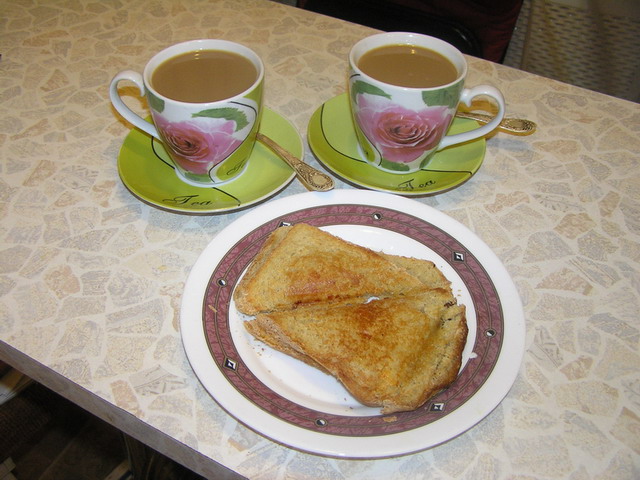 В выходные один день завтракали горячими бутербродами из бутербродницы, а второй день — творогом со сметаной.